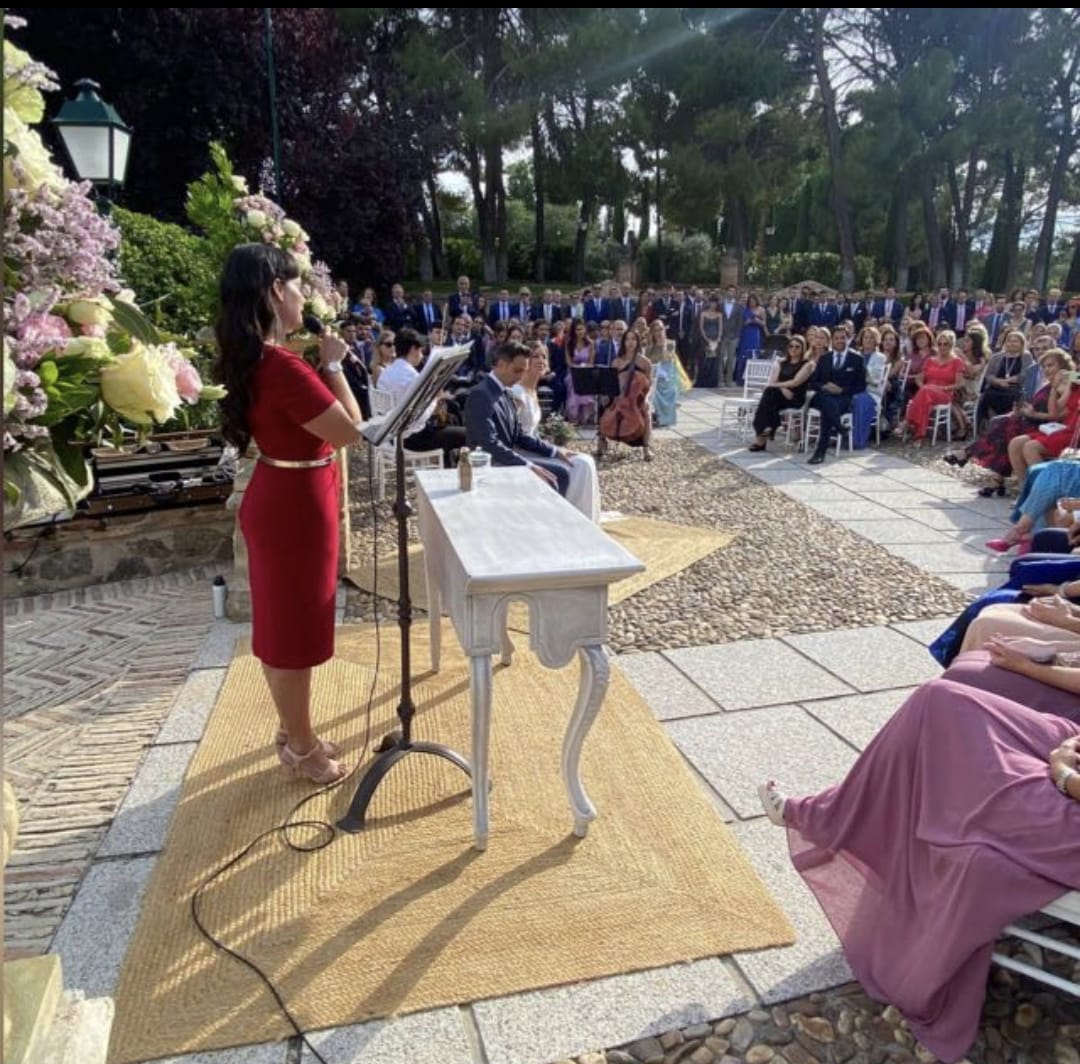 Publicado en maria jose CalvoTrustindex verifica que la fuente original de la reseña sea Google. Sara hizo que uno de los momentos más importantes de nuestra boda se volviera realmente especial. Con su manera cercana, elegante y llena de sensibilidad, narró nuestra historia como si nos conociera de toda la vida. Supo emocionar, hacer reír y mantener a todos conectados en cada palabra. Le agradecemos su profesionalidad, su calma y su capacidad para crear un ambiente tan bonito. Nos sentimos en las mejores manos y repetiríamos con ella sin dudarlo. Gracias, Sara, por dar luz a nuestro “sí” y hacerlo inolvidable.Publicado en Adrián Moratiel RuizTrustindex verifica que la fuente original de la reseña sea Google. Tuvimos una experiencia buenísima con Sara en nuestra boda. Ofició una ceremonia emotiva, personalizada, cuidando los detalles y con una oratoria excepcional. 100% recomendadoPublicado en Beatriz PerezTrustindex verifica que la fuente original de la reseña sea Google. Recomendable 100%. Sara fue nuestra oficiante en el Cigarral del Ángel e hizo que nuestra ceremonia fuese muy cercana y emotiva. Todo el mundo quedó encantado con la ceremonia y principalmente nosotros por el trato recibido desde el minuto uno. Sara es una persona agradable, cariñosa y está pendiente de todos los detalles.Publicado en Estefania ContrerasTrustindex verifica que la fuente original de la reseña sea Google. Carlos, mil gracias por hacer de la ceremonia de nuestra boda uno de los recuerdos más bonitos e inolvidables de nuestras vidas. Desde el primer momento nos sentimos acompañados, escuchados y comprendidos. Supiste captar perfectamente nuestra esencia como pareja y plasmarla en cada palabra, en cada gesto y en cada detalle de la ceremonia. Tu sensibilidad, tu cercanía y tu profesionalismo hicieron que todo fluyera de manera natural y emocionante. Lograste crear un ambiente lleno de amor, alegría y conexión, no solo para nosotros, sino también para todos nuestros invitados. Muchos nos comentaron lo especial y emotiva que fue la ceremonia, y eso, en mucha parte, es gracias a ti. Estamos profundamente agradecidos por haber formado parte de un día tan significativo para nosotros. Lo recordaremos siempre con muchísimo cariño. ¡Gracias de corazón! 💖✨ Estefanía y Juan FelipePublicado en Cristina VegaTrustindex verifica que la fuente original de la reseña sea Google. Sara, muchas gracias por oficiar nuestro día soñado. Nos encanto todo. Todos hablan de lo espectacular que fuiste. GRACIASSSSSPublicado en Maria Aybar RodaTrustindex verifica que la fuente original de la reseña sea Google. Desde el principio Sara nos escucho y traslado a la perfección lo que queríamos . La ceremonia amena , entretenida y emotiva . Le damos un diez por hacer posible que ese día fuera más especial todavía .Publicado en Finca La MachotaTrustindex verifica que la fuente original de la reseña sea Google. En Finca La Machota tuvimos la suerte de colaborar con Ceremonias con Alma, y fue una experiencia realmente bonita. Desde el principio trabajaron con mucho cuidado, la decoración quedó preciosa, fue respetuosa con el entorno y perfectamente adaptada al estilo de los novios. Todo fluyó con mucha naturalidad y se notó el cariño que ponen en lo que hacen.Publicado en Octavio Rodríguez SanzTrustindex verifica que la fuente original de la reseña sea Google. Carlos ha oficiado nuestra boda, y no podemos estar más contentos. Muchas gracias por tu atención y profesionalidad.Publicado en Julieta StaryfurmanTrustindex verifica que la fuente original de la reseña sea Google. Contratamos a Sara para que nos ayudase con nuestra ceremonia en La Quinta de Illescas y todo genial con ella. Siempre disponible y atenta a cada detalle. Salió todo fenomenal! Muchísimas gracias!